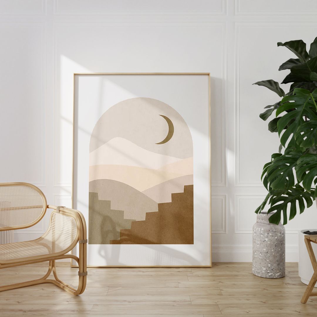 Abstract moon and mountain print framed art G_fa4d2a3b-9e56