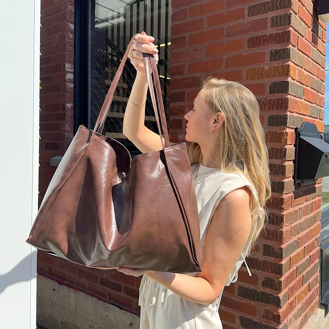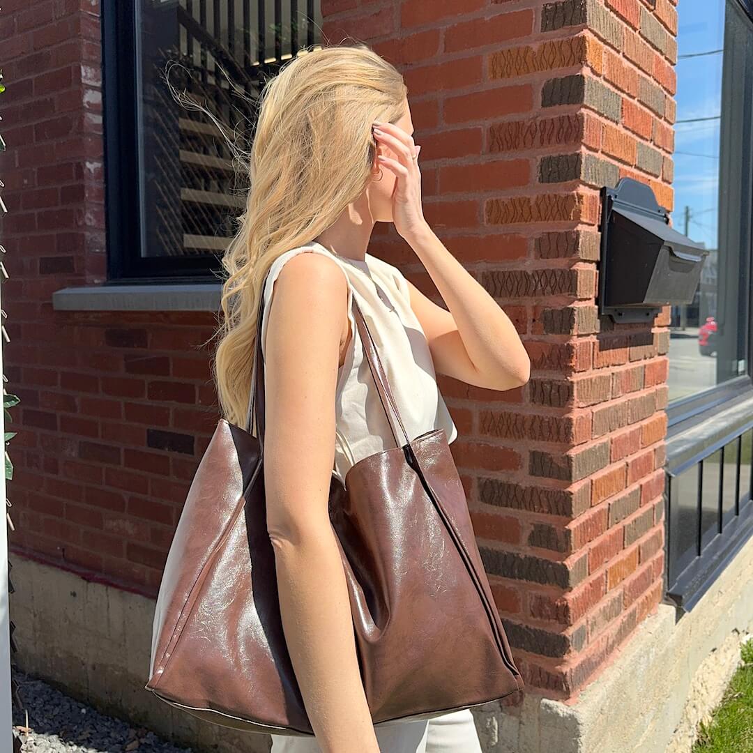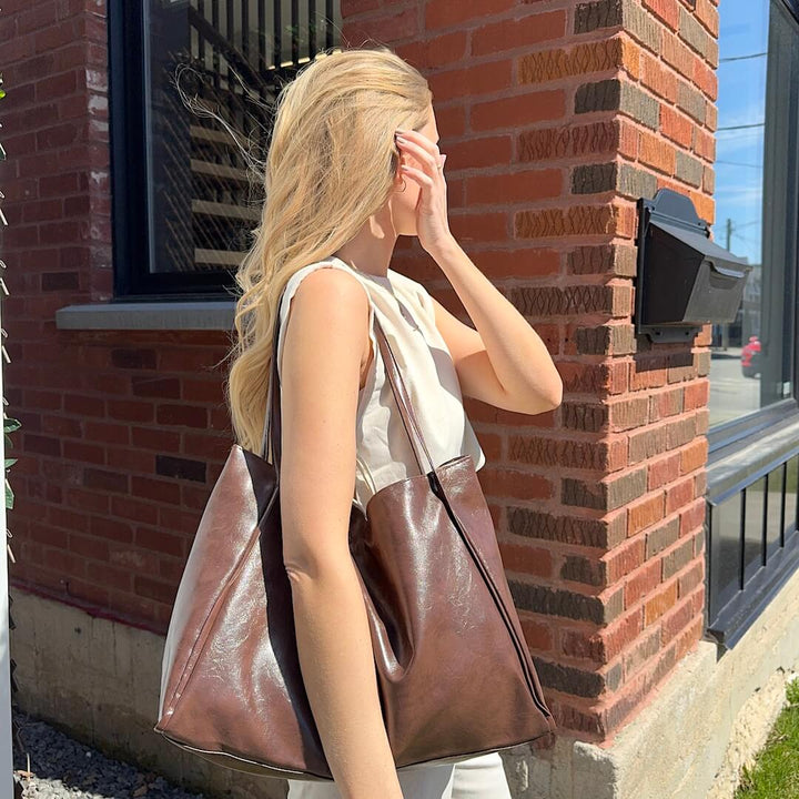 Introducing our elegant and versatile Large Leather Tote Bag, the perfect accessory to elevate your everyday style and meet all your carrying needs! Available in classic brown or sleek black, this tote bag combines fashion and functionality for the modern woman on the go.