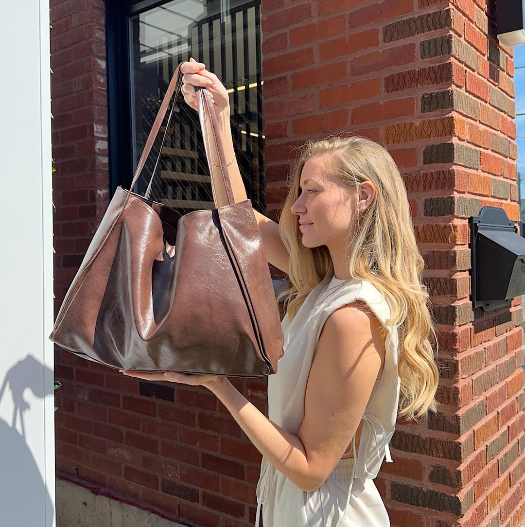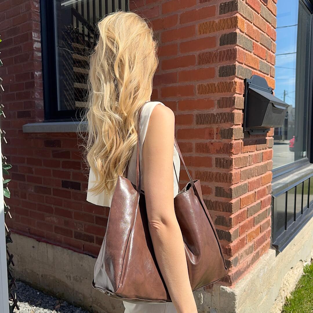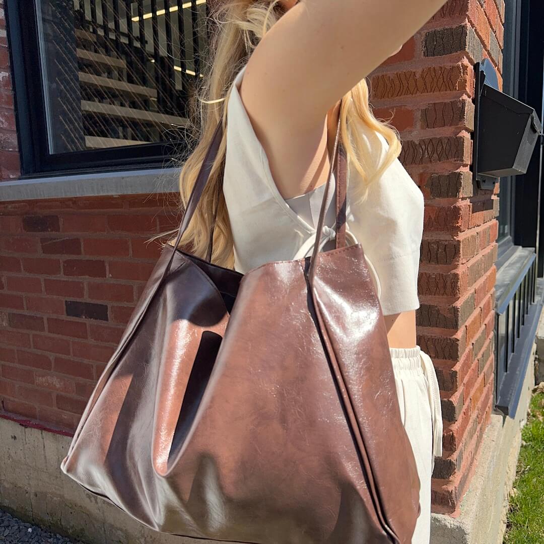 Introducing our elegant and versatile Large Leather Tote Bag, the perfect accessory to elevate your everyday style and meet all your carrying needs! Available in classic brown or sleek black, this tote bag combines fashion and functionality for the modern woman on the go.