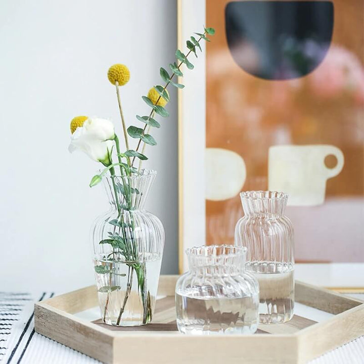Simple and minimal with beautiful details, these glass flower vases will look beautiful with any decor.