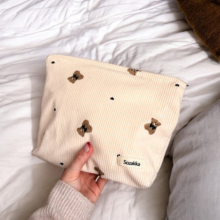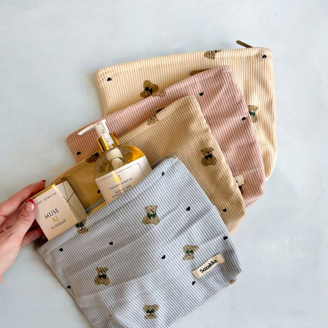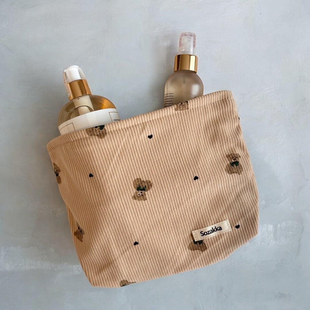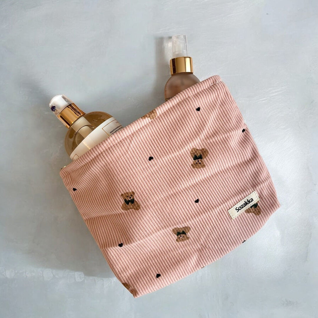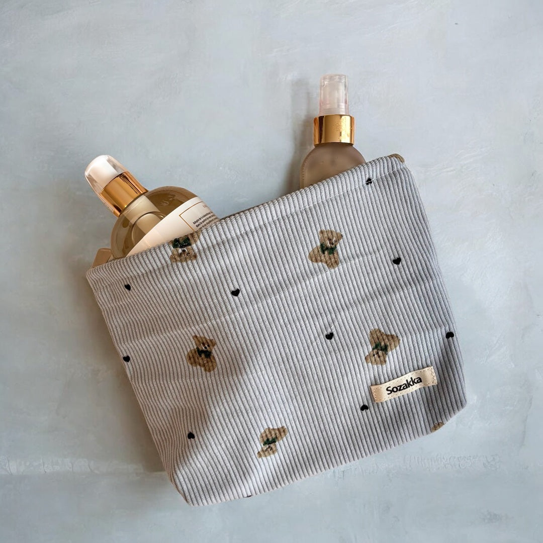 The Teddy Bear Corduroy Makeup Bags let you choose what suits your style. Grab the spacious tote, the compact makeup bag, or both for the perfect pair! Each piece is sold separately, giving you the freedom to mix, match, and make it your own. With four colors and playful bear prints, there’s a bag (or two) for everyone.